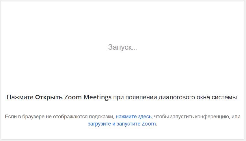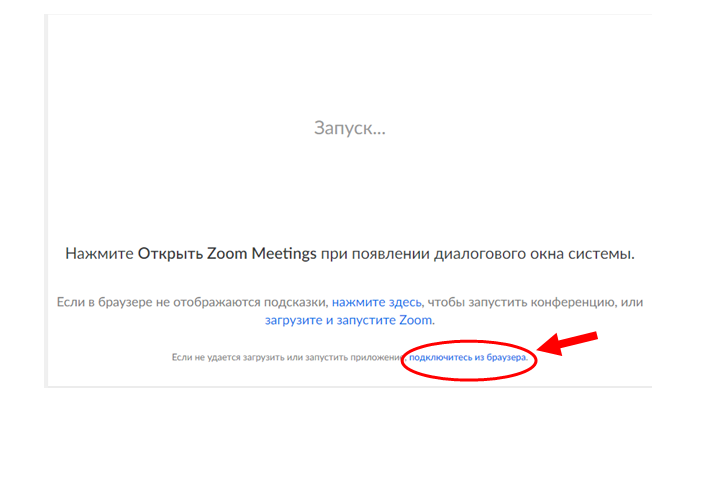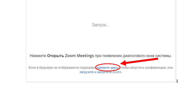 Якщо ви бажаєте завантажити і зайти через програму Zoom, натисніть «Загрузите и запустите Zoom». Після цього програма почне завантажуватись на ваш комп’ютер. Ви також можете зайти в конференцію через браузер Google Chrome, натиснувши «нажмите здесь»: