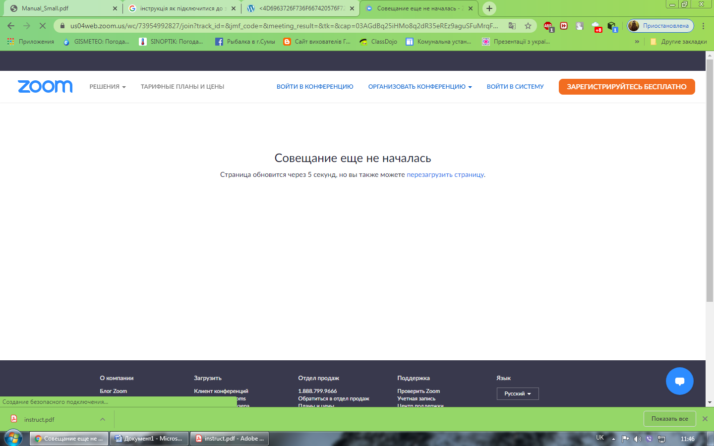 Якщо сесія ще не почалася адміністратором конференції, ви побачите повідомлення, яке говорить: «Совещание еще не началась. Страница обновится через 5 секунд, но вы также можете перезагрузить страницу». За потреби програма може вимагати повторного введення ім’я. Зробіть це ще раз.