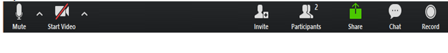 У нижній частині екрану є меню. Ви можете вимкнути звук або відеозображення зі свого комп’ютера, натиснувши «Mute» (звук) або «Start Video». Наприклад, на малюнку вимкнене відеозображення, але увімкнений звук: