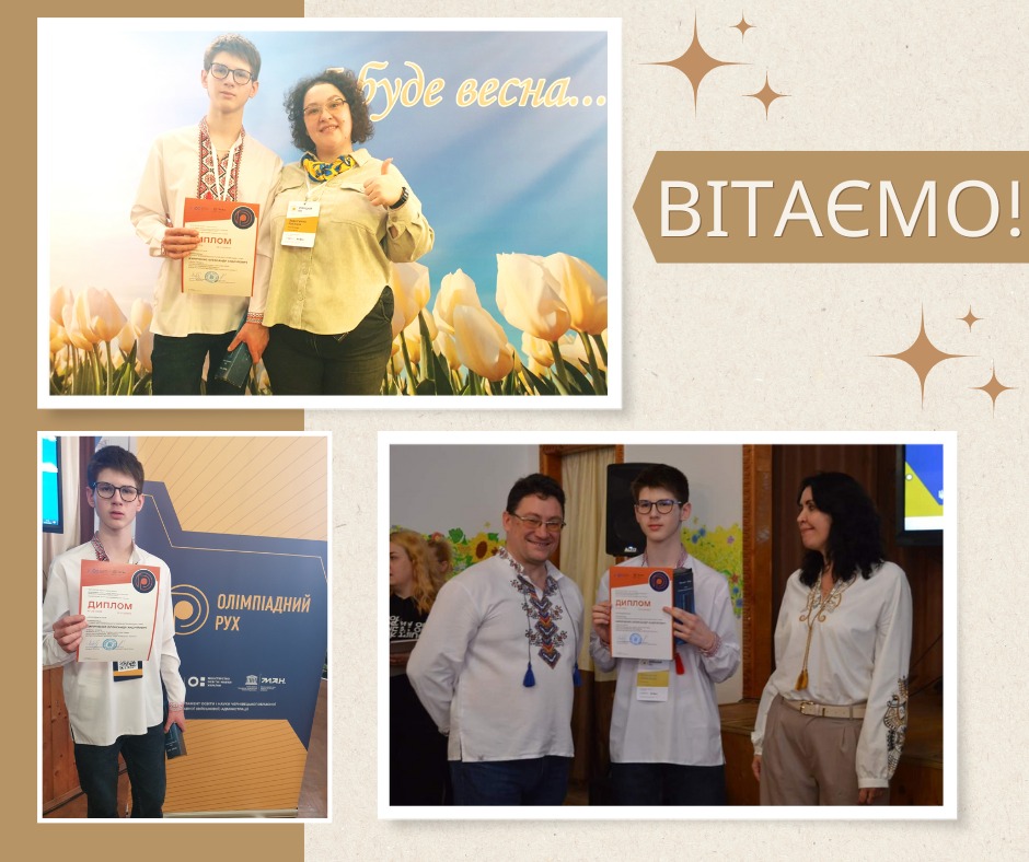 Читати далі...З 22 по 27 березня 2024 року у м. Чернівці відбувся ІV (фінальний) етап Всеукраїнської учнівської олімпіади з хімії.Кириченко Олександр Андрійович, учень 8 класу Бориспільського ліцею «Перспектива» імені Володимира Мономаха (учитель – Задніпряна Руслана Сергіївна) нагороджений дипломом ІІІ ступеня.Дякуємо учню та вчителю-наставнику за наполегливу працю та високу результативність!Ніколи не зупиняйтеся на досягнутому – вчіться, творіть,…